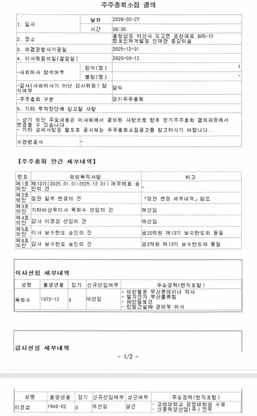 제13기 정기주주총회소집 결의